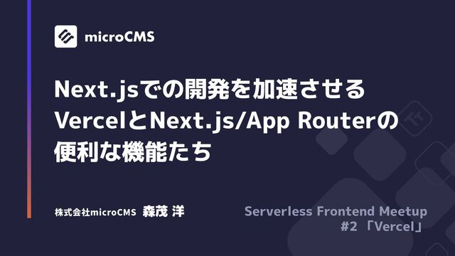 Proプラン以上を使うなら機能を知って使い尽くすべき ◦ 開発だけでなく運用・オブザーバビリティ面も含めVercelはどんどん進化している ▪ Monitoring/Runtime Logs/Audit Logs/Activity Logs/Log Drains ▪ Web AnalitycsがGA(23/04/19) Vercel Web Analytics is now generally available ◦ App Routerの登場とともに、 あらためてNext.jsとVercelとの親和性は高い(MiddlewareとCacheAPI) • 5/1-5のSpecial launch eventが楽しみ https://vercel.com/ship
