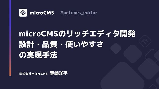 #prtimes_editor 野崎洋平 microCMSのリッチエディタ開発 設計・品質・使いやすさ の実現手法