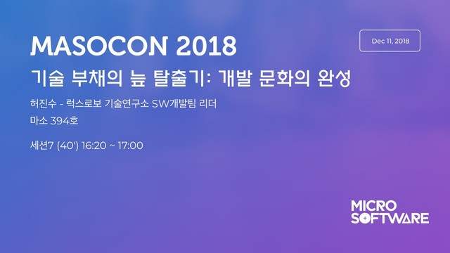 [마소콘2018] 기술 부채의 늪 탈출기- 개발 문화의 완성 - 허진수