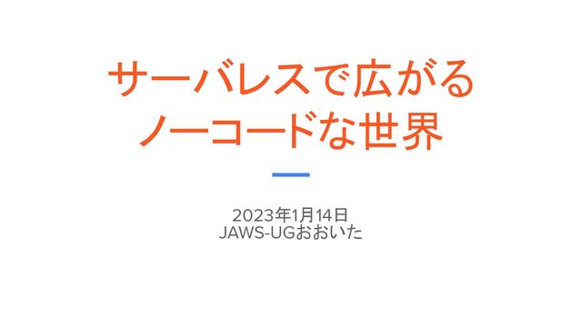 サーバレスで広がる ノーコードな世界 2023年1月14日 JAWS-UGおおいた