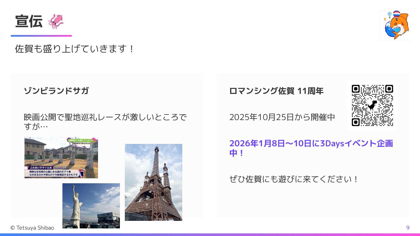 宣伝 🦑 佐賀も盛り上げていきます! ゾンビランドサガ 映画公開で聖地巡礼レースが激しいところで すが… ロマンシング佐賀 11周年 2025年10月25日から開催中 2026年1月8日〜10日に3Daysイベント企画