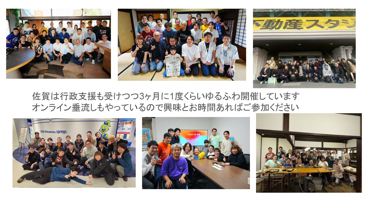 佐賀は行政支援も受けつつ3ヶ月に1度くらいゆるふわ開催しています オンライン垂流しもやっているので興味とお時間あればご参加ください