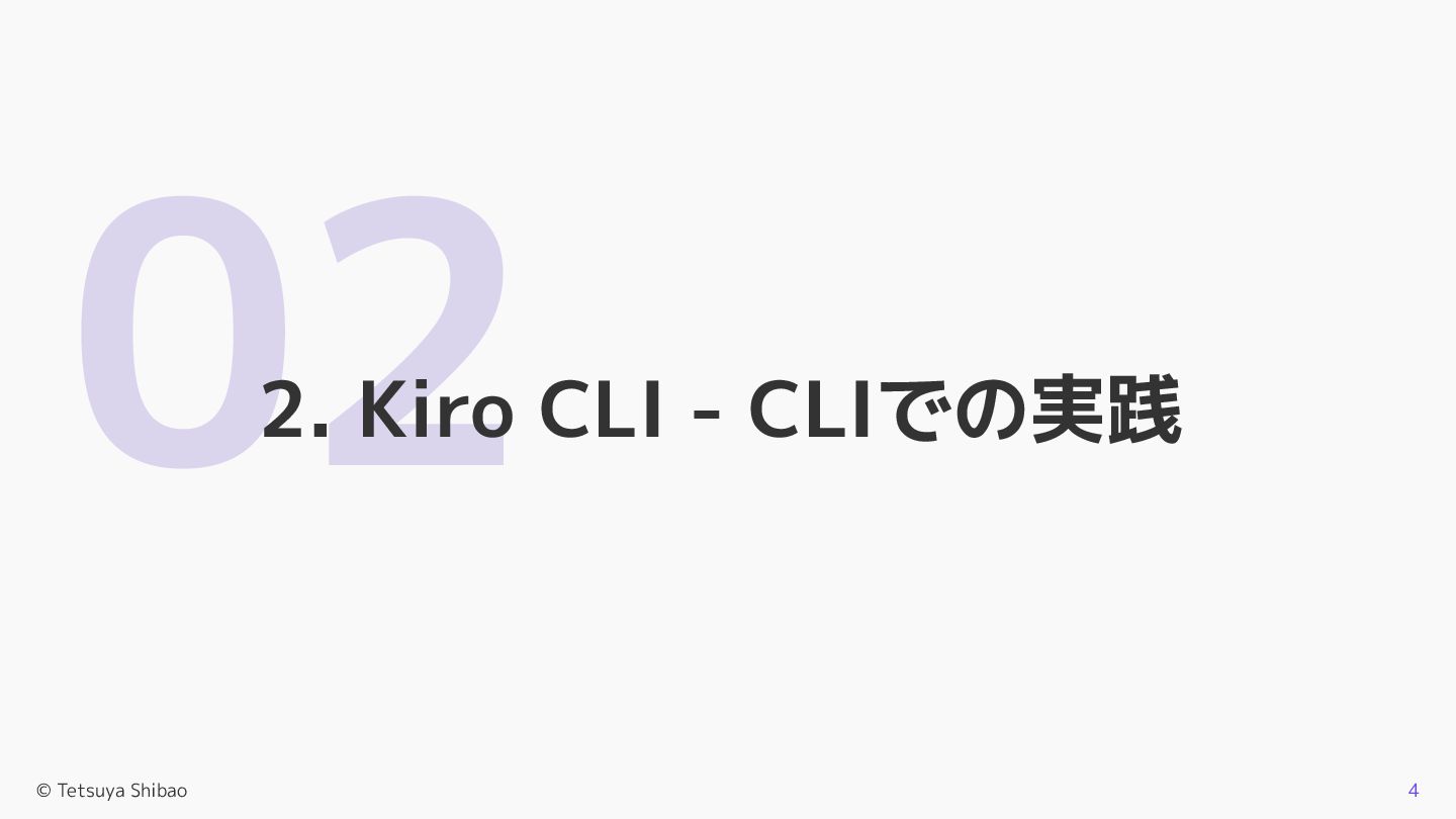 02 2. Kiro CLI - CLIでの実践 © Tetsuya Shibao 4