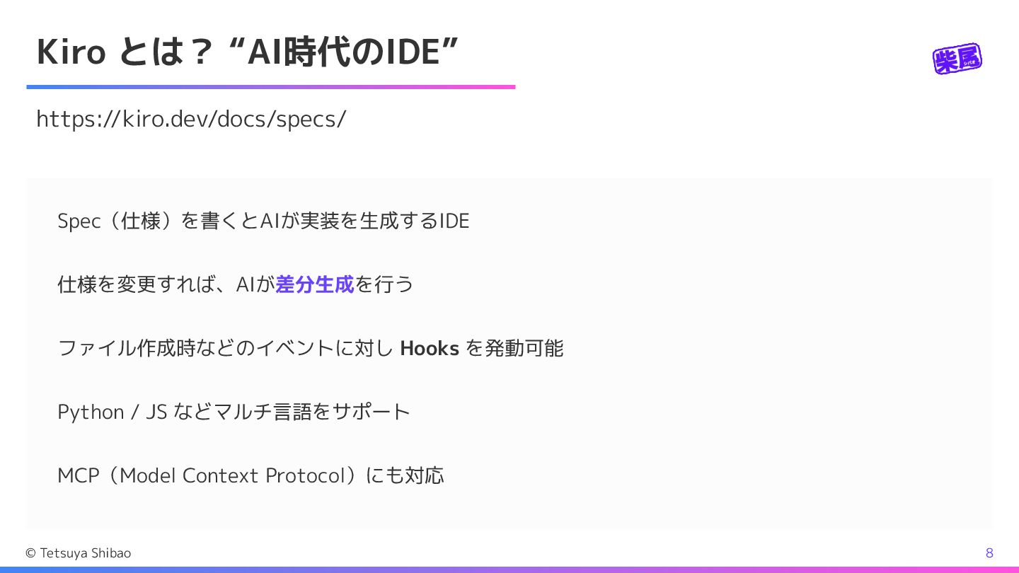 Kiro という“AI時代のIDE”が何を変えるのか知る 4 Hooks を使った実践イメージを掴む © Tetsuya Shibao 2