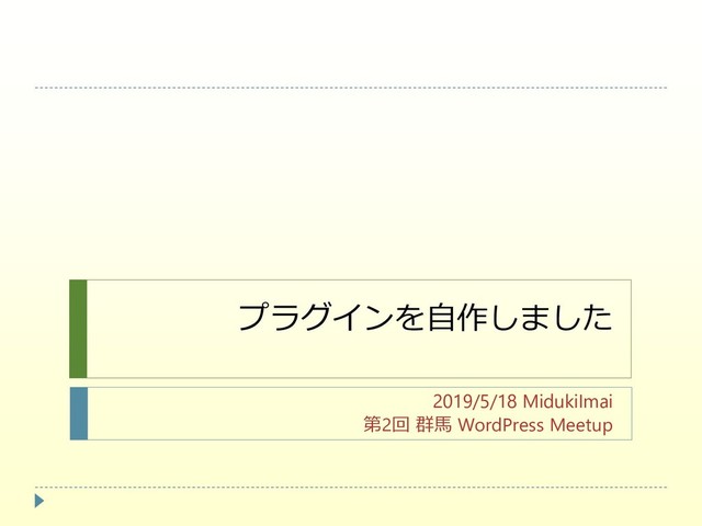 プラグインを自作しました 2019/5/18 MidukiImai 第2回 群馬 WordPress Meetup