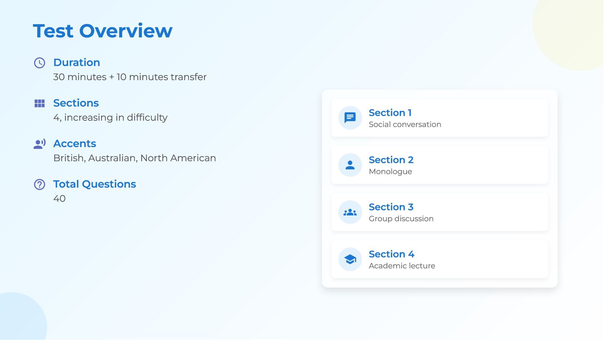 Strong listening skills can change the outcome of an IELTS exam. Many students from Bangladesh find the listening section stressful because the audio plays only once and covers a range of accents. The test focuses on memory, attention, and speed. This blog explains the format, shows how questions are structured, and offers practice audio with answer keys. The goal is to help learners prepare with clarity, build confidence, and avoid common mistakes. With consistent practice and guidance, students can aim for higher bands. The next section introduces the structure of the IELTS Listening Test.