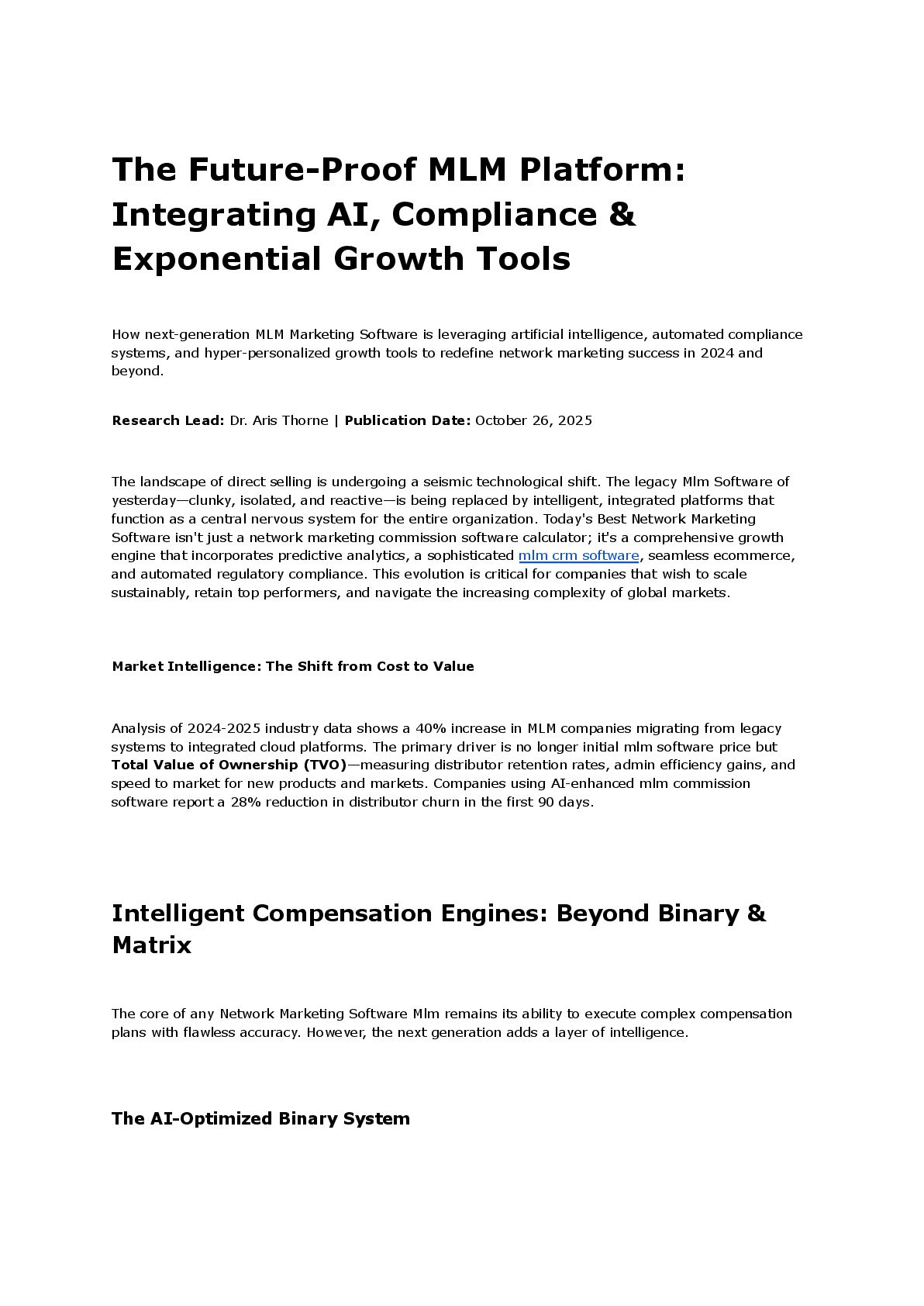 How next-generation MLM Marketing Software is leveraging artificial intelligence, automated compliance systems, and hyper-personalized growth tools to redefine network marketing success in 2024 and beyond.