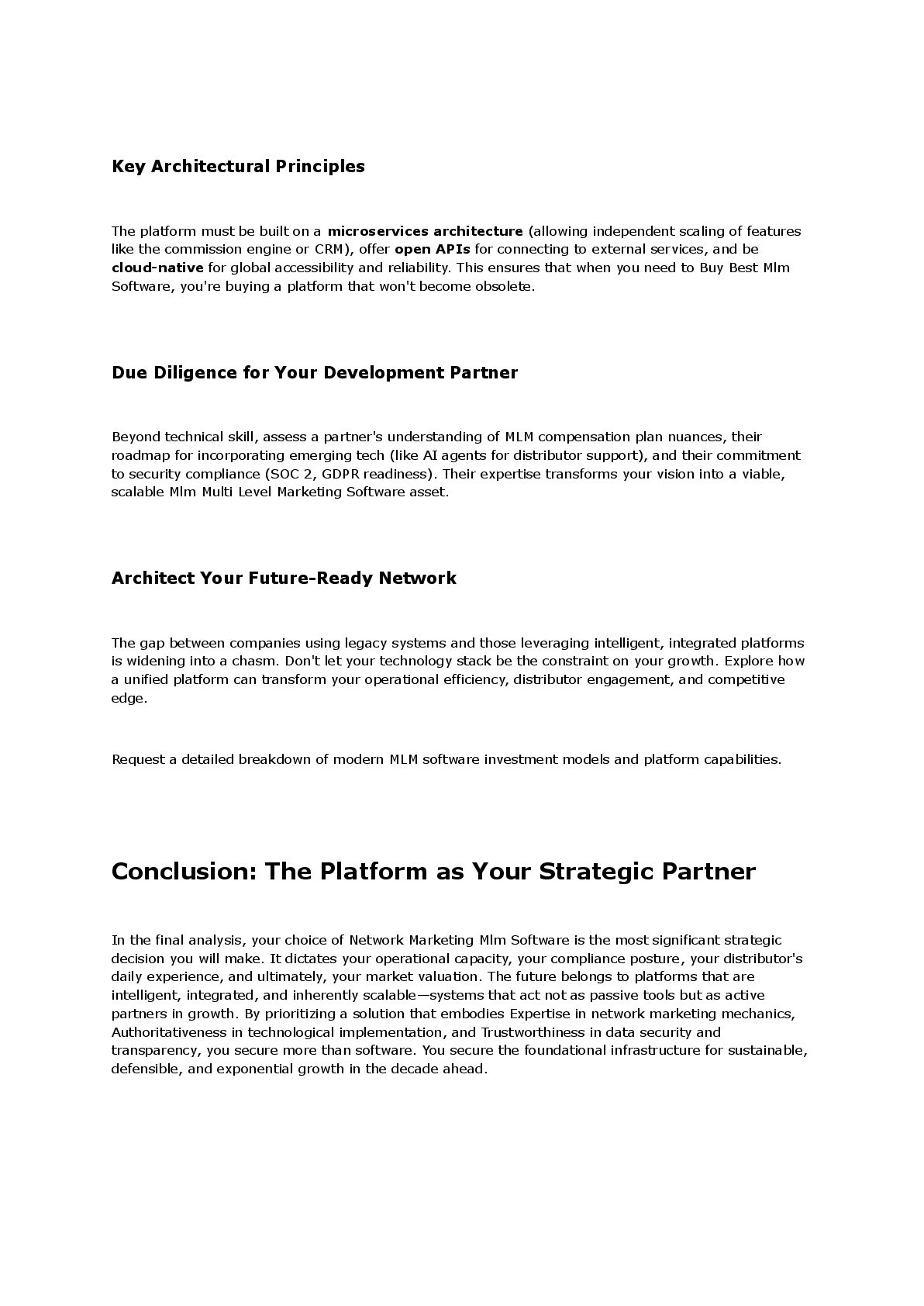 The platform must be built on a microservices architecture (allowing independent scaling of features like the commission engine or CRM), offer open APIs for connecting to external services, and be cloud-native for global accessibility and reliability. This ensures that when you need to Buy Best Mlm Software, you're buying a platform that won't become obsolete.