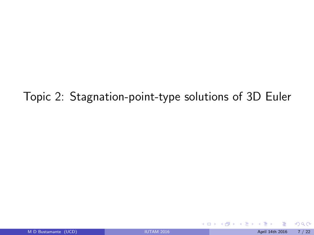 Bustamante, J. Fluid Mech. 771:468 (2015)] [MLB, J. Fluid Mech. 788:R3 (2016)] • Lie infinitesimal symmetries in the normal direction to the plane. Solutions along the characteristics: M D Bustamante (UCD) IUTAM 2016 April 14th 2016 12 / 22