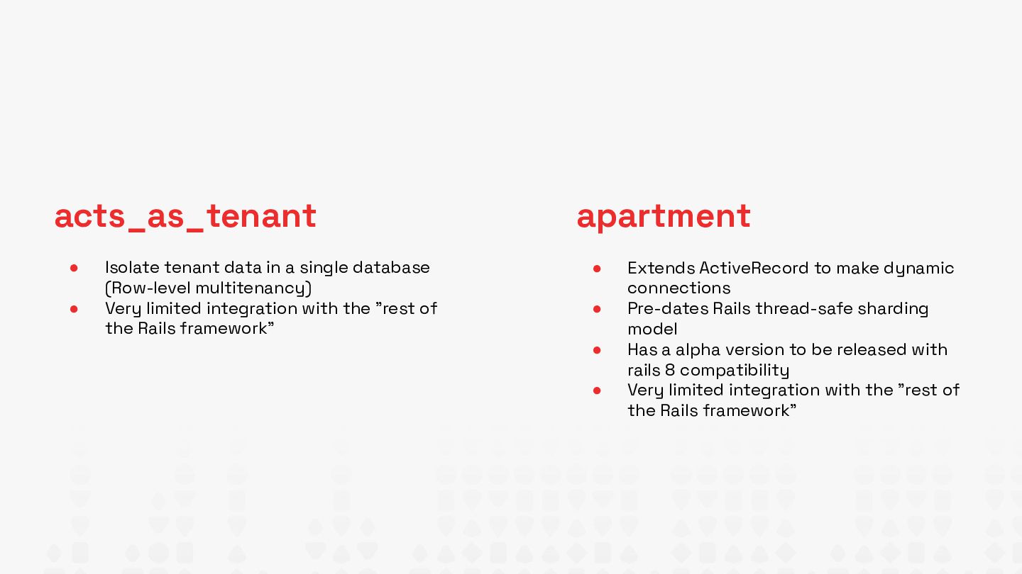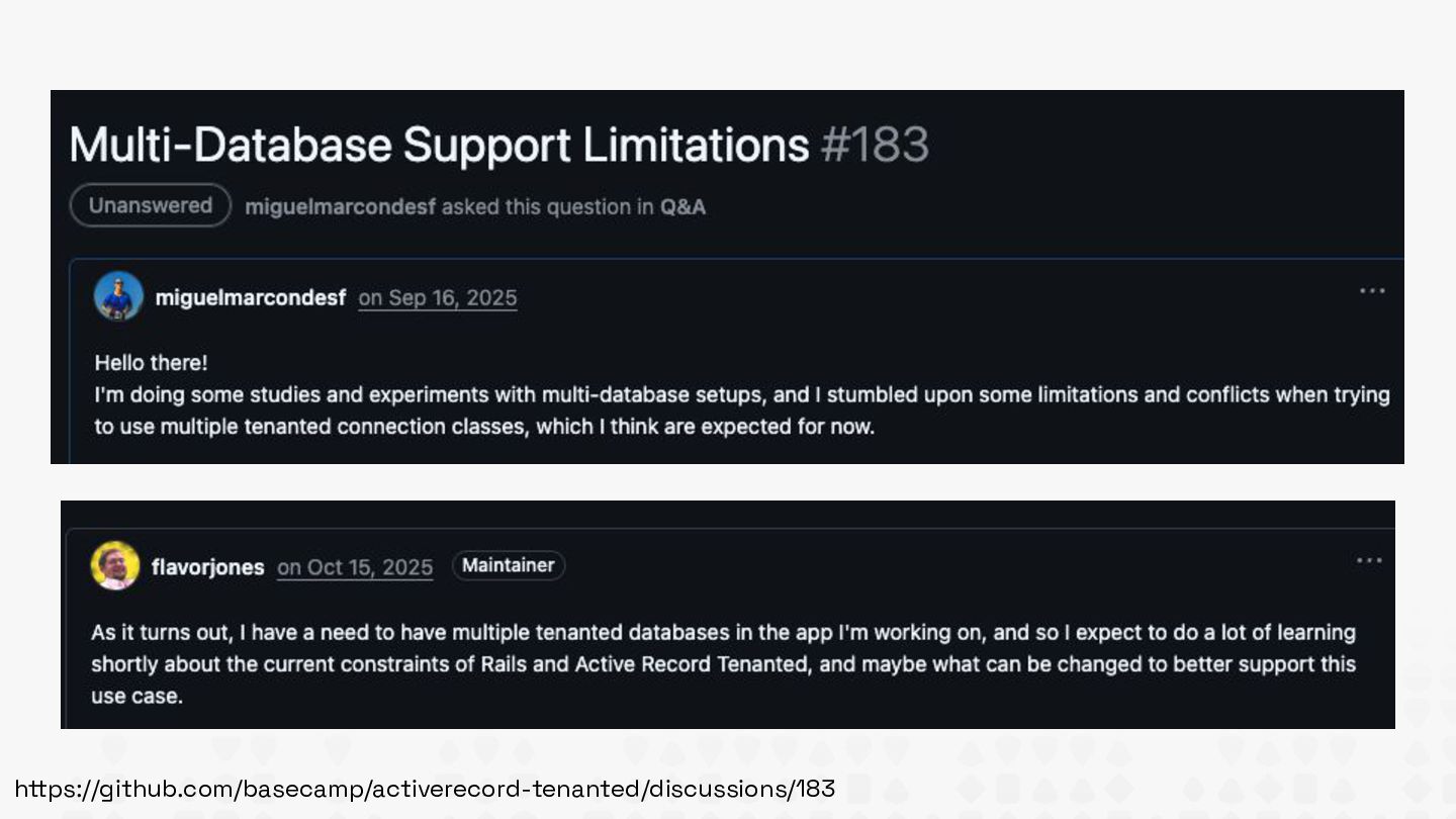 Discover Basecamp's new ActiveRecord::Tenanted gem for multi-tenant Rails apps. Learn database-per-tenant architecture with automatic data isolation. I'll share what works, current limitations, future features already mapped, and honest trade-offs from implementing this brand-new solution.