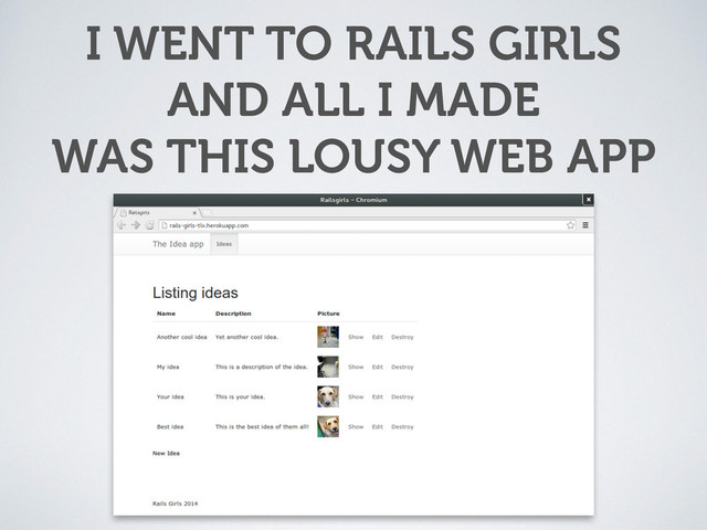 Links: - Try Ruby: http://tryruby.org/ - Learn Rails: http://learn-rails.com/ - CodeCatz: http://codecatz.github.io/ - Slovenia Ruby User Group: http://www.rug.si/