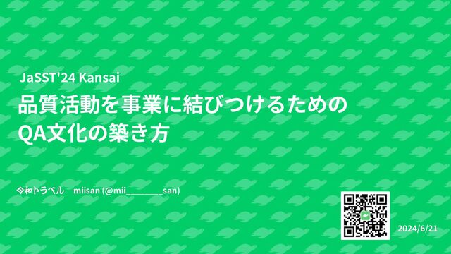 2024/06/21に開催されたJaSST'24 Kansaiで登壇した発表資料です。
