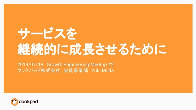 サービスを 継続的に成長させるために 2019/07/18 Growth Engineering Meetup #2 クックパッド株式会社 会員事業部 Yuki Miida