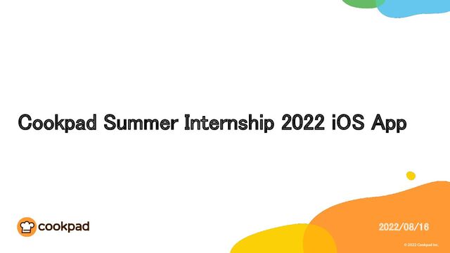 © 2022 Cookpad Inc. Cookpad Summer Internship 2022 iOS App