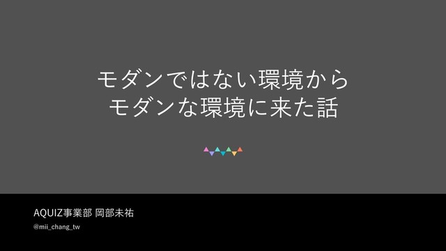 "26*;ࣄۀ෦Ԭ෦ະ༞ !NJJ@DIBOH@UX ϞμϯͰͳ͍ڥ͔Β Ϟμϯͳڥʹདྷͨ