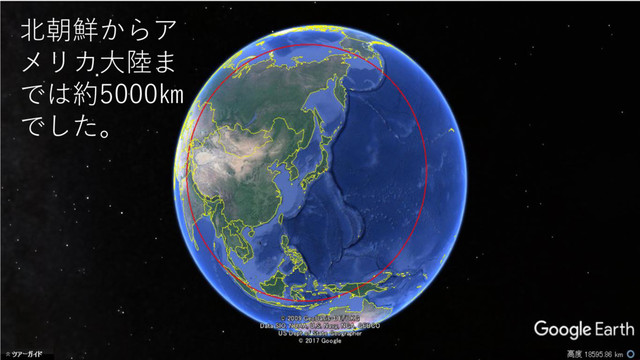 北朝鮮からア メリカ大陸ま では約5000㎞ でした。