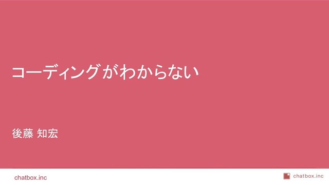 chatbox.inc 後 藤 知 宏 株式会社chatbox 代表取締役 関西フロントエンドUG代表 Twitter :