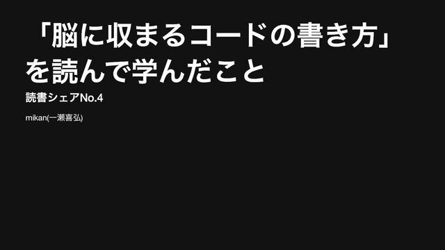 「脳に収まるコードの書き方」 を読んで学んだこと 読書シェアNo.4 mikan( 一瀬喜弘)