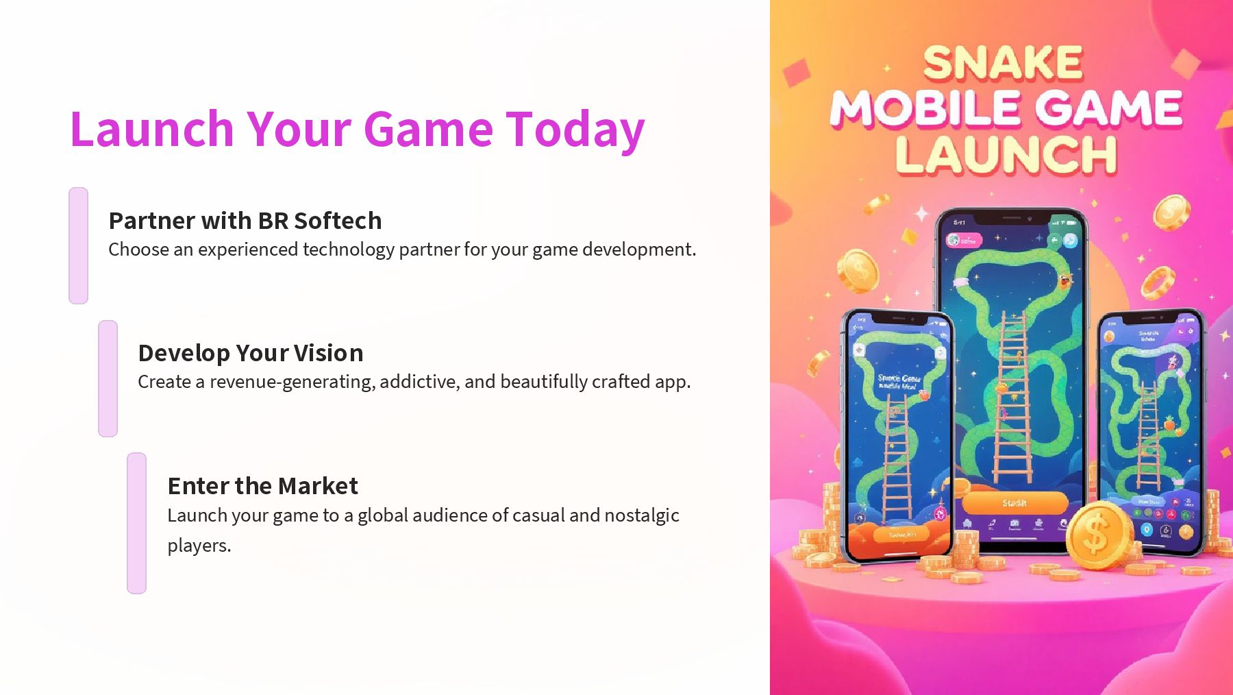 BR Softech transforms the timeless board game Snake and Ladder into a digital sensation with high-quality graphics, real-time multiplayer, and AI-based opponents. Our custom development solutions include cross-platform compatibility, intuitive UI, animated game boards, and secure payment integration for real-money modes. Engage players with power-ups, leaderboards, and social sharing features, and take the nostalgia of this traditional game to the next level with mobile and web support.