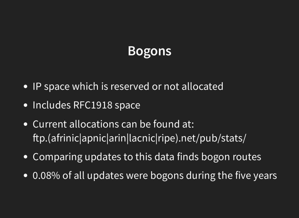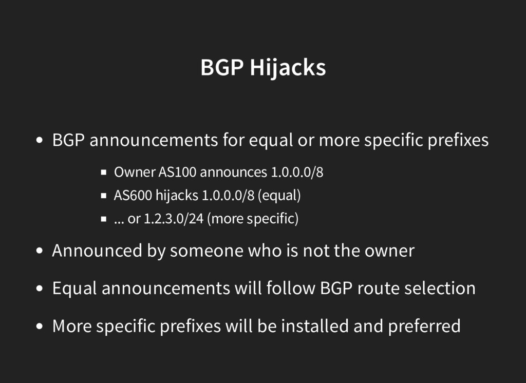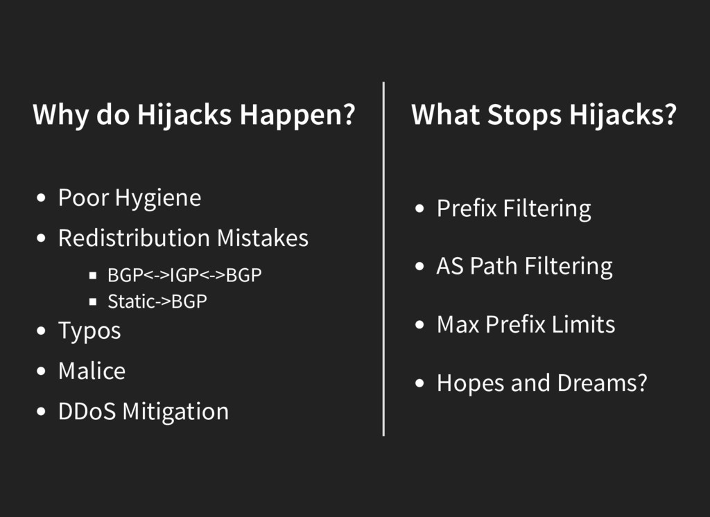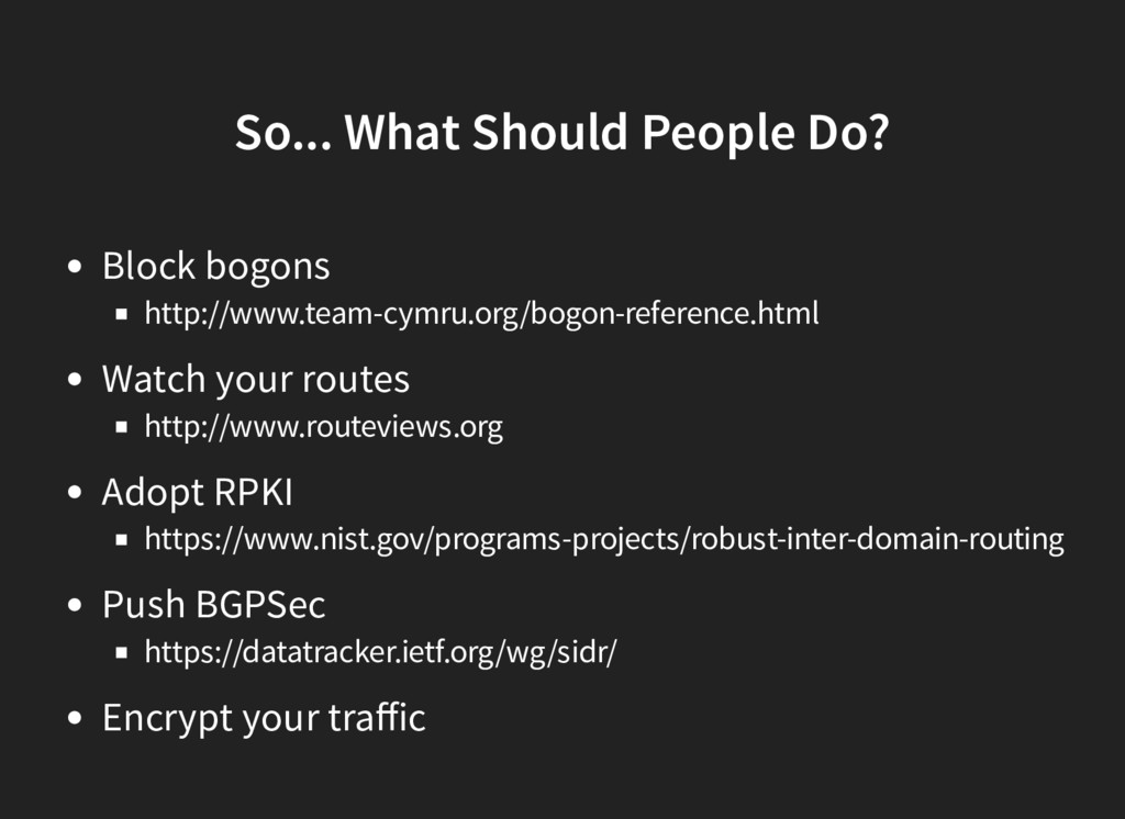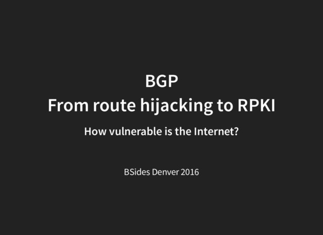 Trust is an important aspect of our daily actions on the Internet. Trust model discussions often focus on endpoints or even venture into TCP/IP and DNS, but rarely do they consider the important role BGP plays. BGP provides distributed control over core decisions, such as where packets go and how they get there. Despite this important piece of operating the Internet, many of the validation and security mechanisms have remained unchanged since the 1990s. This talk will cover the current state of BGP, some real-world examples of data, unique perspectives on it, and what is being done to improve the state of Internet routing. The data reviewed will include answers to questions such as: What percentage of the Internet is announcing routes that can't have ownership independently validated? How many routes shouldn't even exist in the global routing table? What parts of the world are the worst offenders? The talk will also introduce real-world assumptions that can be used to create models for hijack detection in any organization. After applying these assumptions, the same data points will be reviewed over an extended period of time. Finally, attendees will be provided with an overview of route validation methods, including industry best practices such as bogon filters, large-scale mechanisms including IRR, and cryptographic origin validation using a tool like RPKI. The discussion will also ensure coverage of future developments to solve not just origin validation but also full path validation.