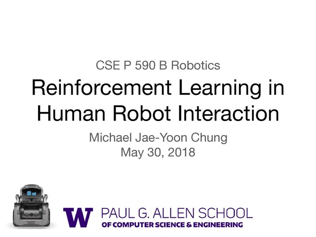 policy class ! E.g., support vector machine, neural network, decision tree, deep belief net, … ! Estimate a policy (=mapping from states to actions) from the training examples (s , a ), (s , a ), (s , a ), … Behavioral cloning from the training examples (s0 , a0 ), (s1 , a1 ), (s2 , a2 ), … ! Two of the most notable success stories: ! Pomerleau, NIPS 1989: ALVINN ! Sammut et al., ICML 1992: Learning to fly (flight sim) Q: Can’t we directly learn teacher’s policy using supervised learning? Courtesy of Pieter Abbeel