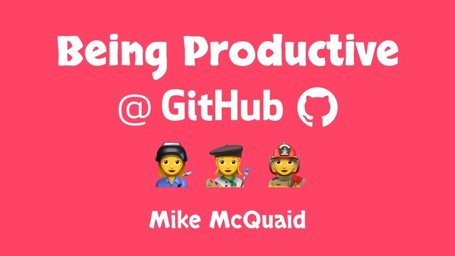 Being Productive @ GitHub A ! " # Mike McQuaid