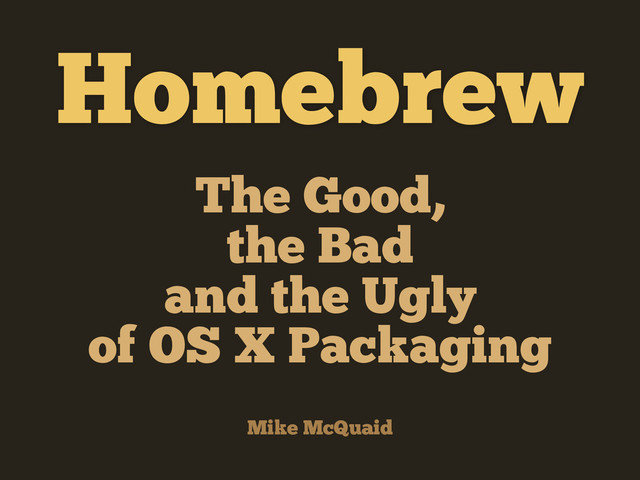 Some of the things that Homebrew does well, badly and the special challenges that OSX packagers need to deal with. Presented at FOSDEM in 2015.