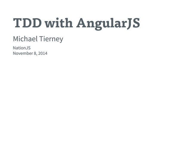 In this talk we will build a simple AngularJS application using the principles of Test Driven Development (TDD). While we will primarily focus on using Karma and Jasmine to create unit tests, we will also look at creating end-to-end (commonly referred to as E2E) integration tests using Protractor.