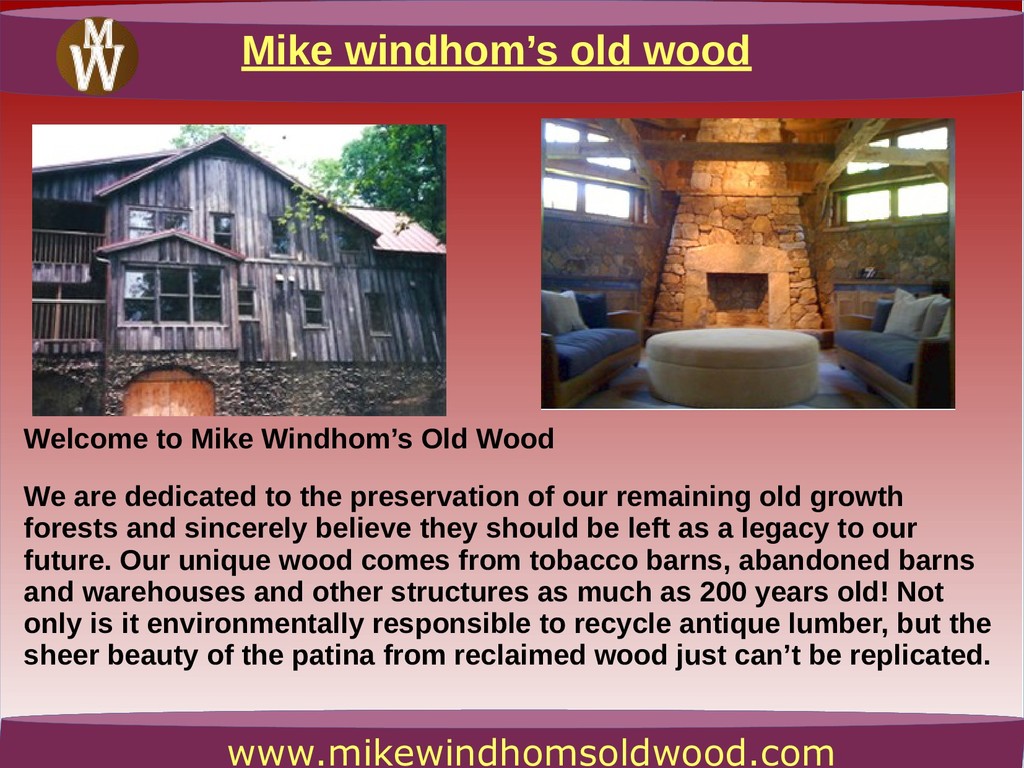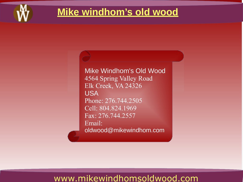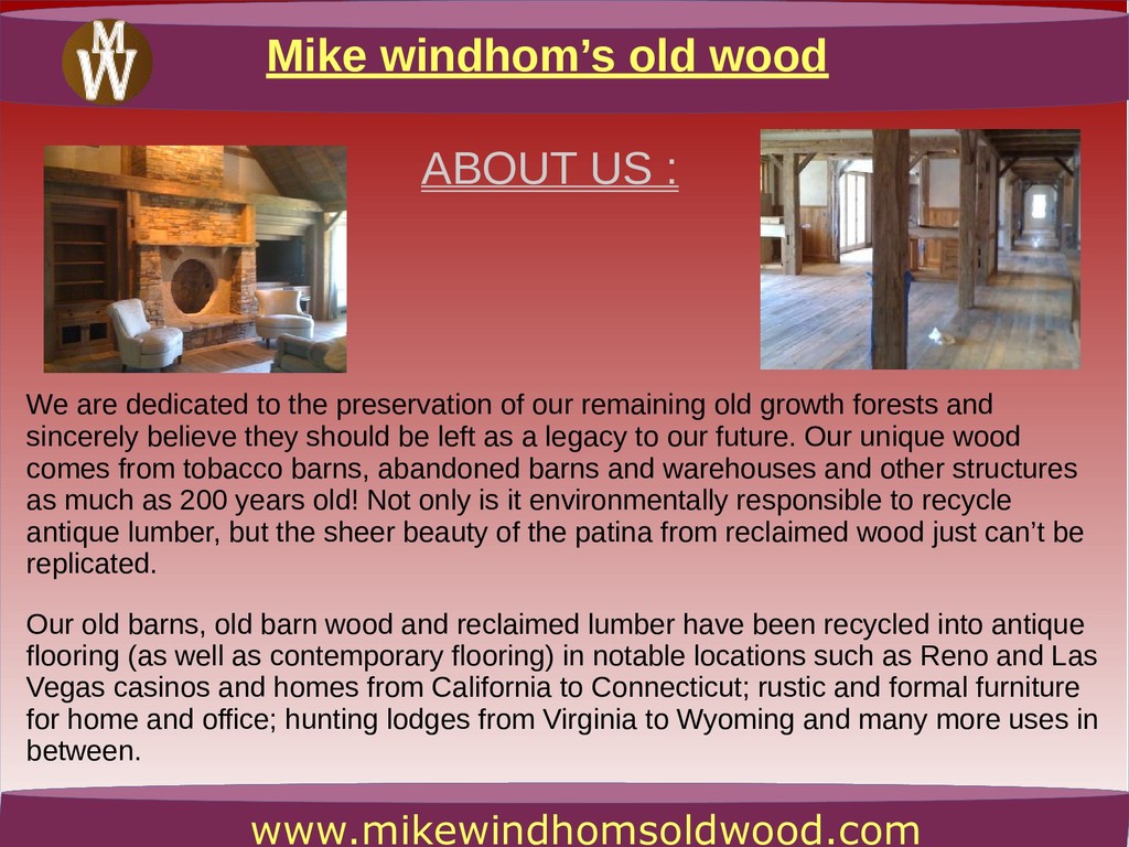 At Mike Windhom’s Old Wood, you can find the exceptional kind of Vintage Barn Wood for typical furniture and flooring applications. Talk to us at 2767442505.