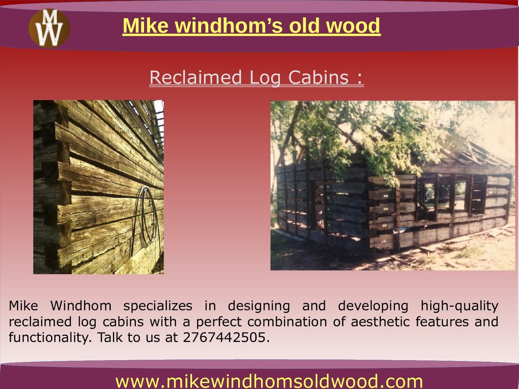 Windhom specializes in designing and developing high-quality reclaimed log cabins with a perfect combination of aesthetic features and functionality. Talk to us at 2767442505.