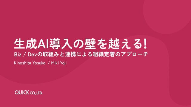 生成AI導入の壁を越える! Biz / Devの取組みと連携による組織定着のアプローチ Kinoshita Yosuke / Miki Yoji