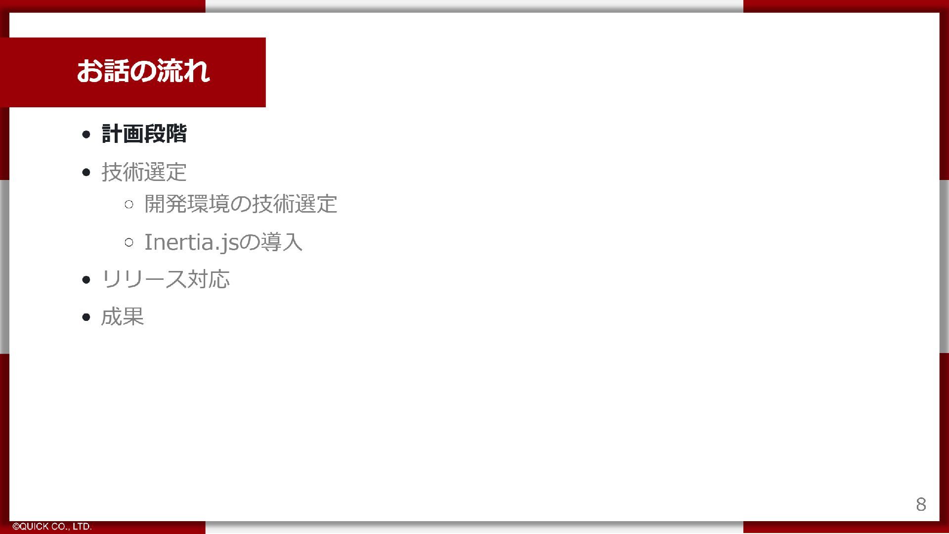 本トークでは、問題を安全に解決するための戦略と、FuelPHP(PHP version 7.3)からLaravel(PHP version 8.2)へのリプレイスを行いつつ