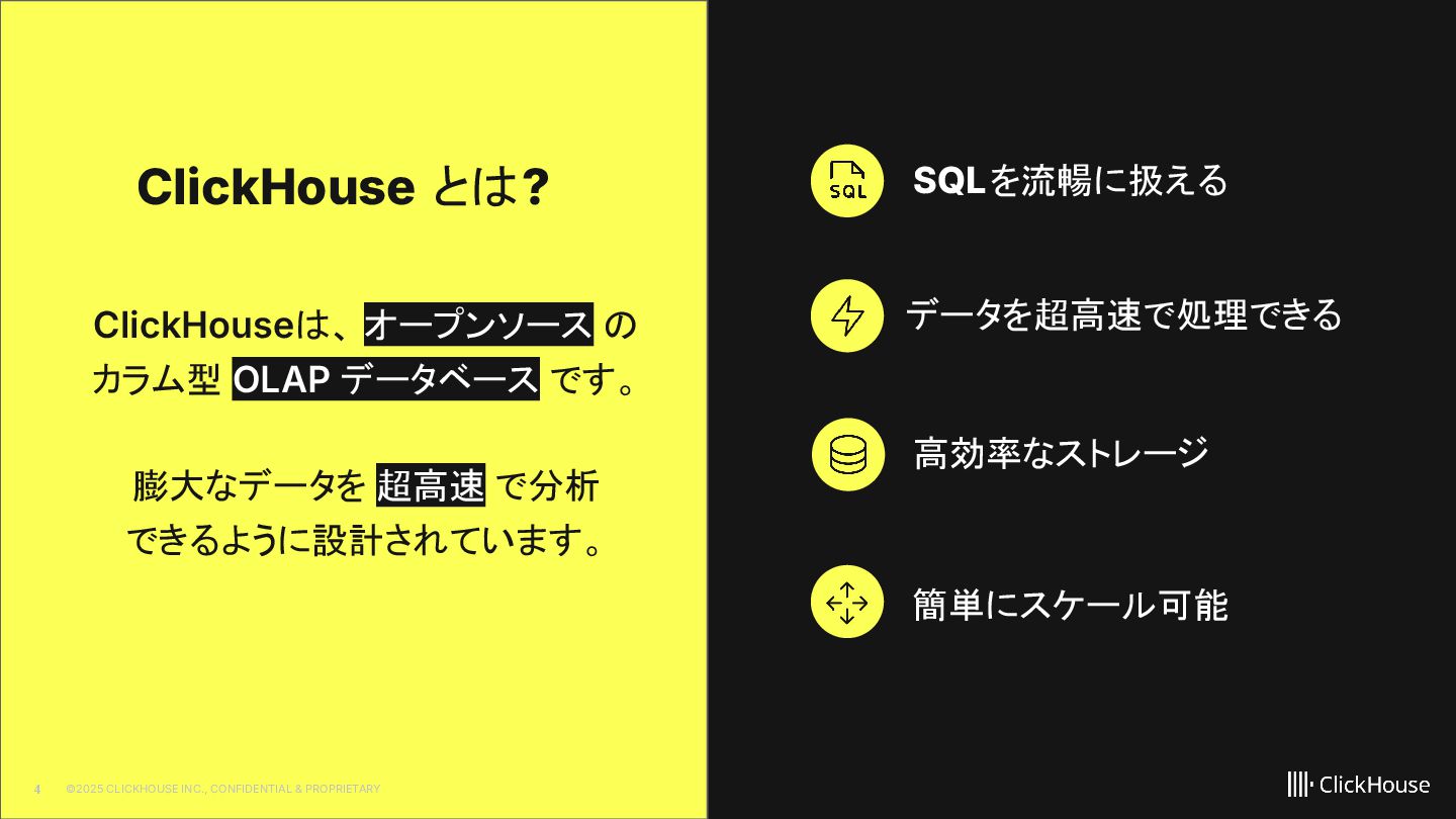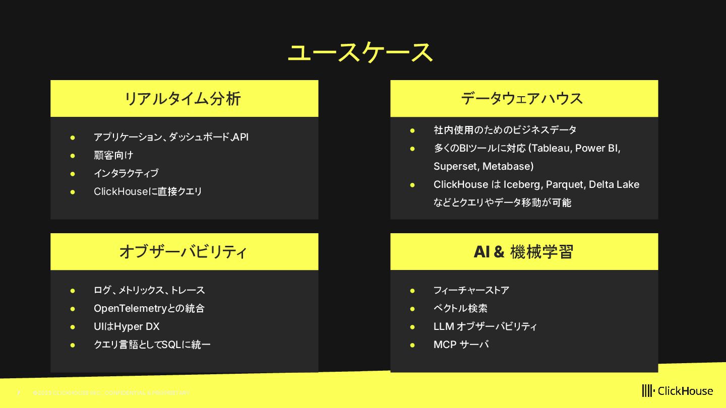 2025年9月30日に開催された ClickHouse Meetup でのスライドです。