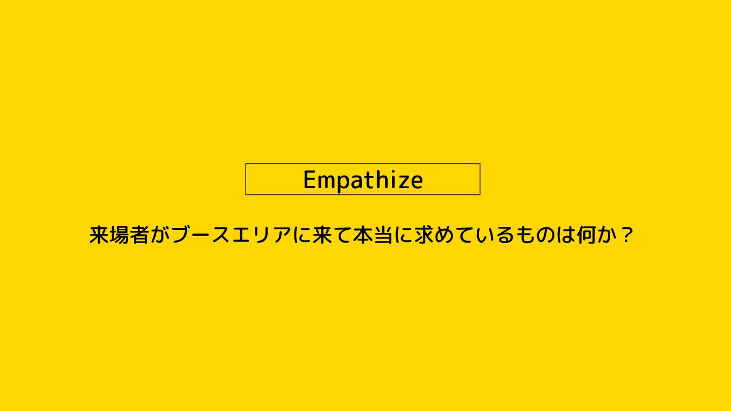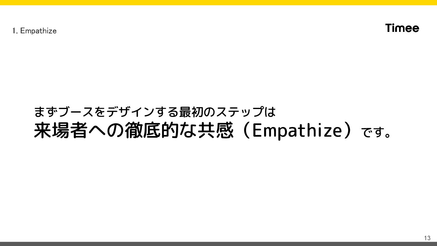 1. Empathize まずブースをデザインする最初のステップは 来場者への徹底的な共感(Empathize)です。 13