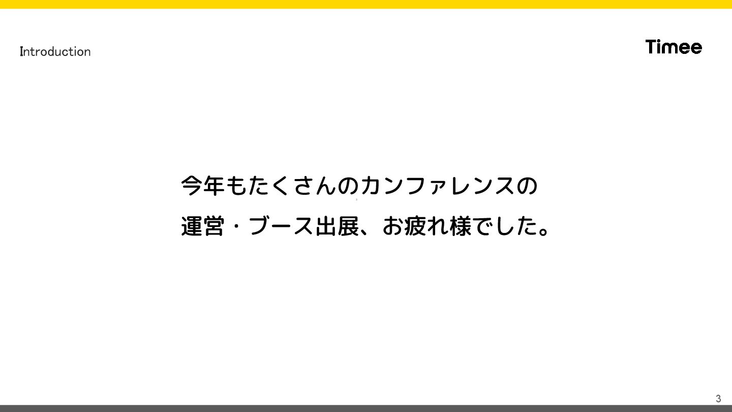 Introduction 3 今年もたくさんのカンファレンスの 運営・ブース出展、お疲れ様でした。 3