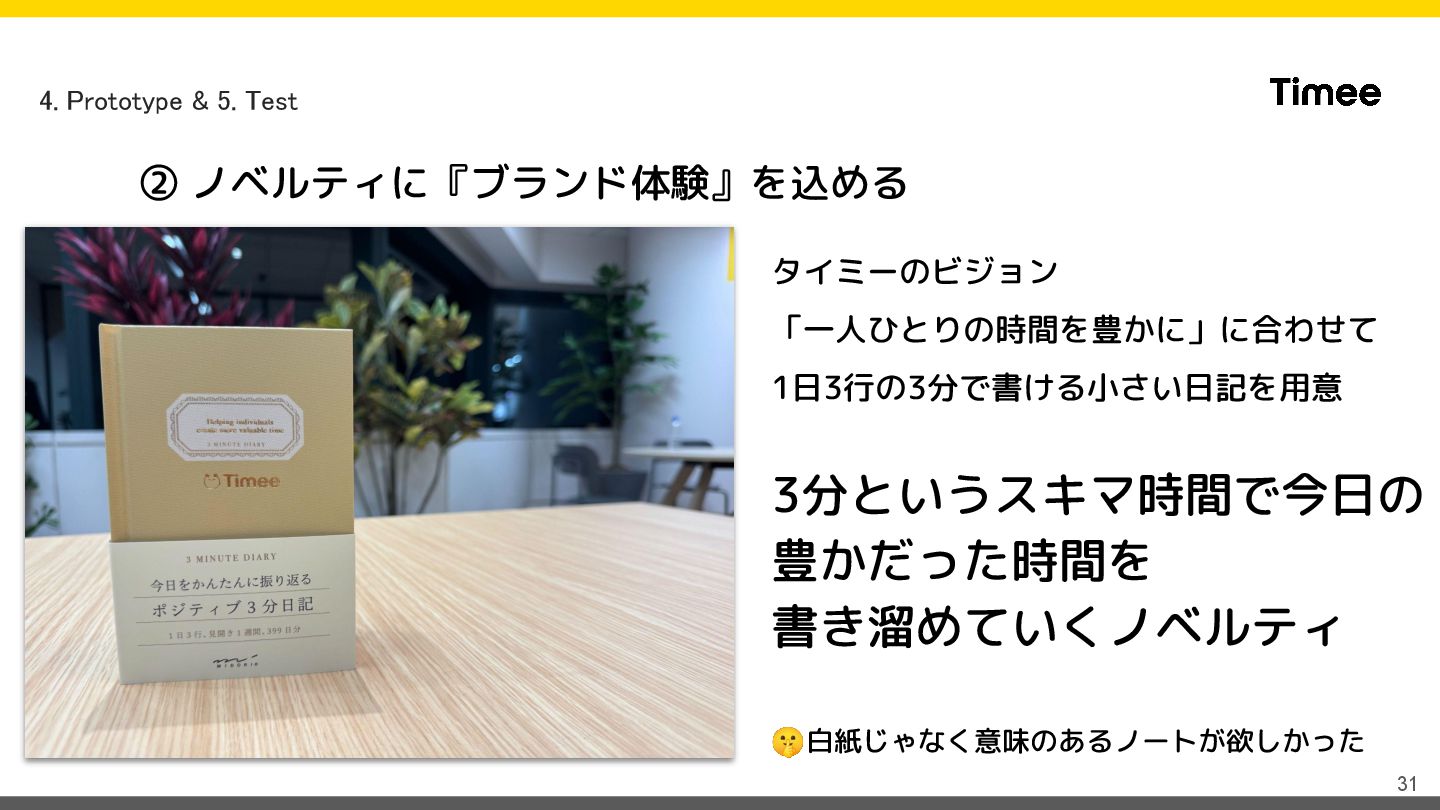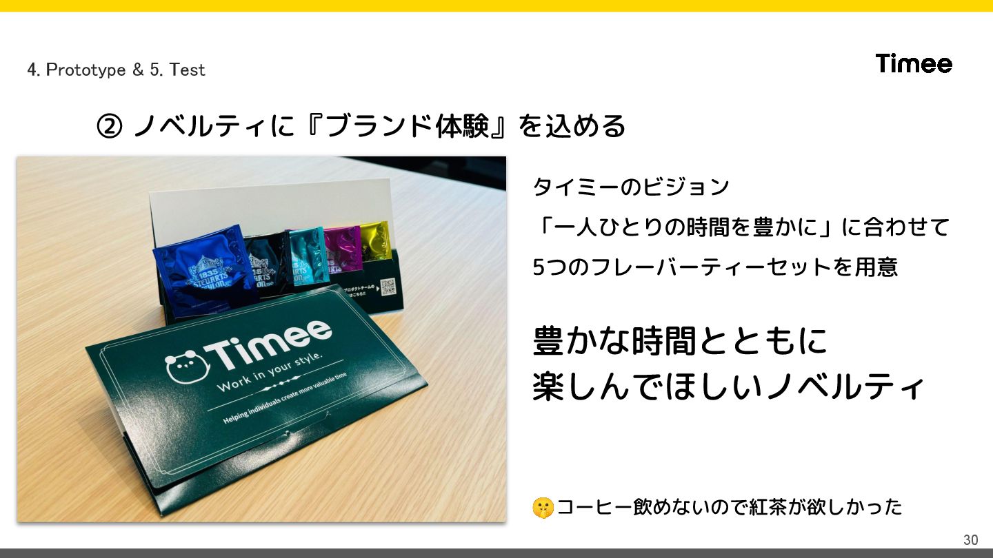 4. Prototype & 5. Test ② ノベルティに『ブランド体験』を込める 30 タイミーのビジョン