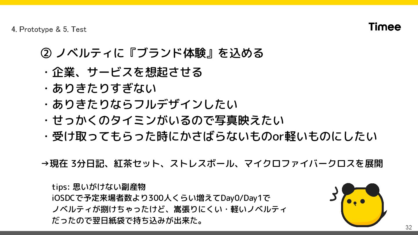4. Prototype & 5. Test ② ノベルティに『ブランド体験』を込める 31 タイミーのビジョン