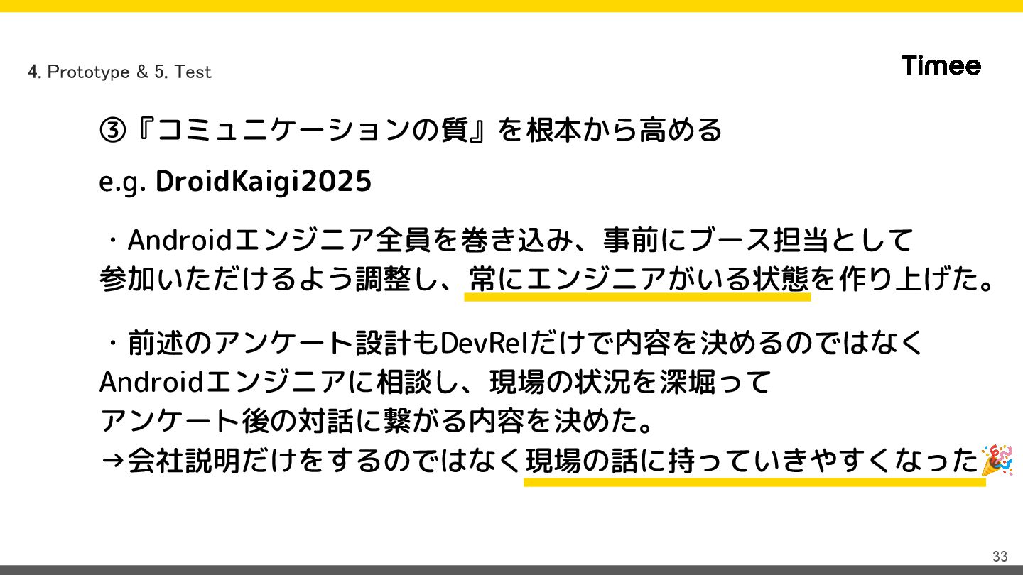 4. Prototype & 5. Test ③『コミュニケーションの質』を根本から高める e.g. DroidKaigi2025 33