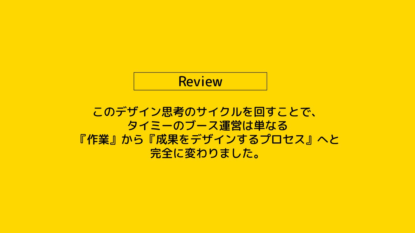 34 このデザイン思考のサイクルを回すことで、 タイミーのブース運営は単なる 『作業』から『成果をデザインするプロセス』へと 完全に変わりました。 Review