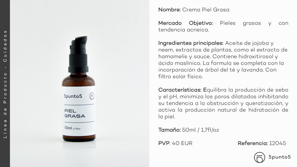 INFORMACIÓN INSTRUCCIONES DE USO INFORMACIÓN INGREDIENTES PPALES. INGREDIENTES PPALES. INGREDIENTES PPALES. 2/3 TÓNICO 3/3 BÁLSAMO Este tónico equilibra el pH, revitaliza y prepara la piel para los cuidados posteriores, gracias a su formulación. Hidrolato de rosas, agua salina, aloe vera, vitaminas hidrosolubles y extracto de miel. 1- Usa el jabón con agua templada. 2- Aplícalo con suavidad por la zona deseada. 3- Utiliza abundante agua templada para retirar el jabón. Aplica el tónico después de limpiar la piel. 1- Pon una pequeña cantidad de tónico en un disco de algodón. 2- Aplícalo con suavidad mediante movimientos circulares o mediante toques sobre la piel. INSTRUCCIONES DE USO Aplica el bálsamo después de limpiar y tonificar la piel. 1- Pon una pequeña cantidad del mismo en la palma de la mano. 2- Aplícalo con suavidad mediante movimientos circulares sobre la piel. Este jabón sólido, hidrata profunda- mente y mantiene la capa hidrolipídica de la piel, respetando el equilibrio de la misma. Limpia, hidrata y calma. Se ha diseñado este set porque creemos en el cuidado de la piel en tres fases: limpiar > tonificar > hidratar+nutrir. Dirigido a la limpieza y cuidado de la piel cuando ésta presenta una sequedad excesiva, picores y rojeces. La sinergia de sus tres productos evita la pérdida de hidratación , aportando lípidos estructurales que restablecen la barrera protectora de la piel. Manteca de karité, aceite de oliva virgen extra, aceite de aguacate, aceite de coco, extractos de caléndu- la y miel y sales del mar Muerto. Usamos ingredientes orgánicos. Sin perfumes ni colorantes. *Repetir este proceso por la mañana y por la noche.* Este bálsamo ayuda a la piel a mante- ner niveles de hidratación a largo plazo, preservando su función barrera. Evita sensaciones como la tirantez, el picor y la irritación. Manteca de karité y una mezcla de aceites vegetales orgánicos de prim- era presión en frío, extractos vege- tales altamente purificados, como el hidroxitirosol y los triterpenos pen- tacíclicos del olivo y aceites esencia- les de manzanilla y lavanda. Con filtro solar físico. PIEL SEBORREICA INFORMACIÓN INGREDIENTES PPALES. CONSEJOS INSTRUCCIONES DE USO Esta crema de textura ligera aporta hidratación, equilibra el pH de la piel, disminuyendo el prurito y/o enrojecimiento. Aceite de neem, extracto de caléndula, extracto de bardana, junto con la formulación de hidroxitirosol y ácido maslínico. Con filtro solar físico. No te olvides de limpiar y tonificar tu piel también por la noche. Aplicar por la mañana después de limpiar la piel y el uso del tónico. 1- Pon una pequeña cantidad en la palma de la mano. 2- Aplícala con suavidad median- te movimientos circulares sobre la piel. Usamos ingredientes orgánicos. Sin perfumes ni colorantes. Mostrando el vínculo entre la sabiduría galénica del pasado y el diseño moderno, minimalista y técnico El producto tiene una función específica y clara y entrega en él.