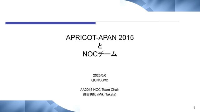 APRICOT-APAN 2015 と NOCチーム 2025/6/6 QUNOG32 AA2015 NOC Team Chair