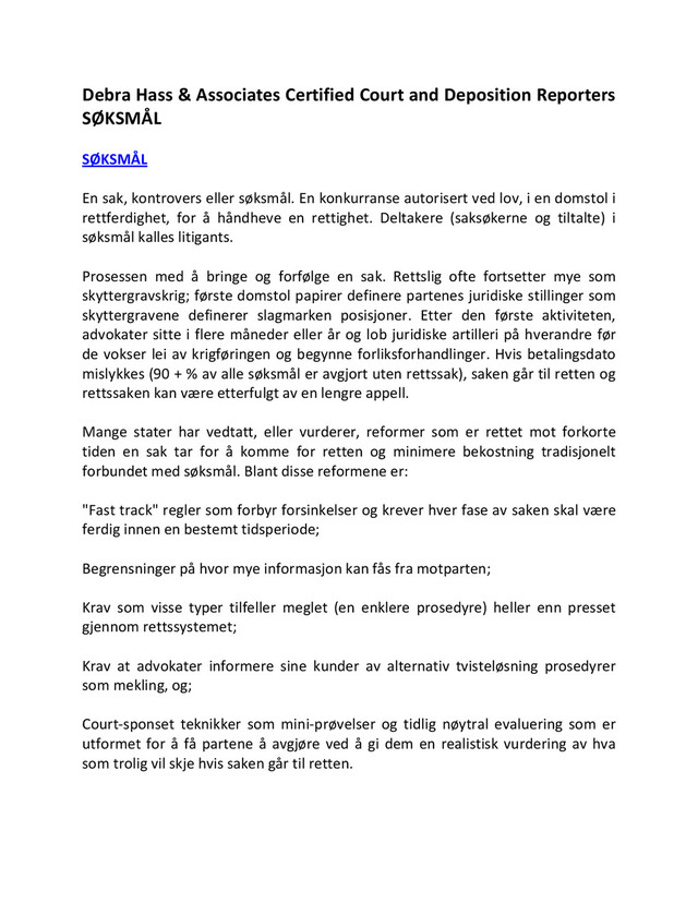 Debra Hass & Associates Certified Court and Deposition Reporters SØKSMÅL
