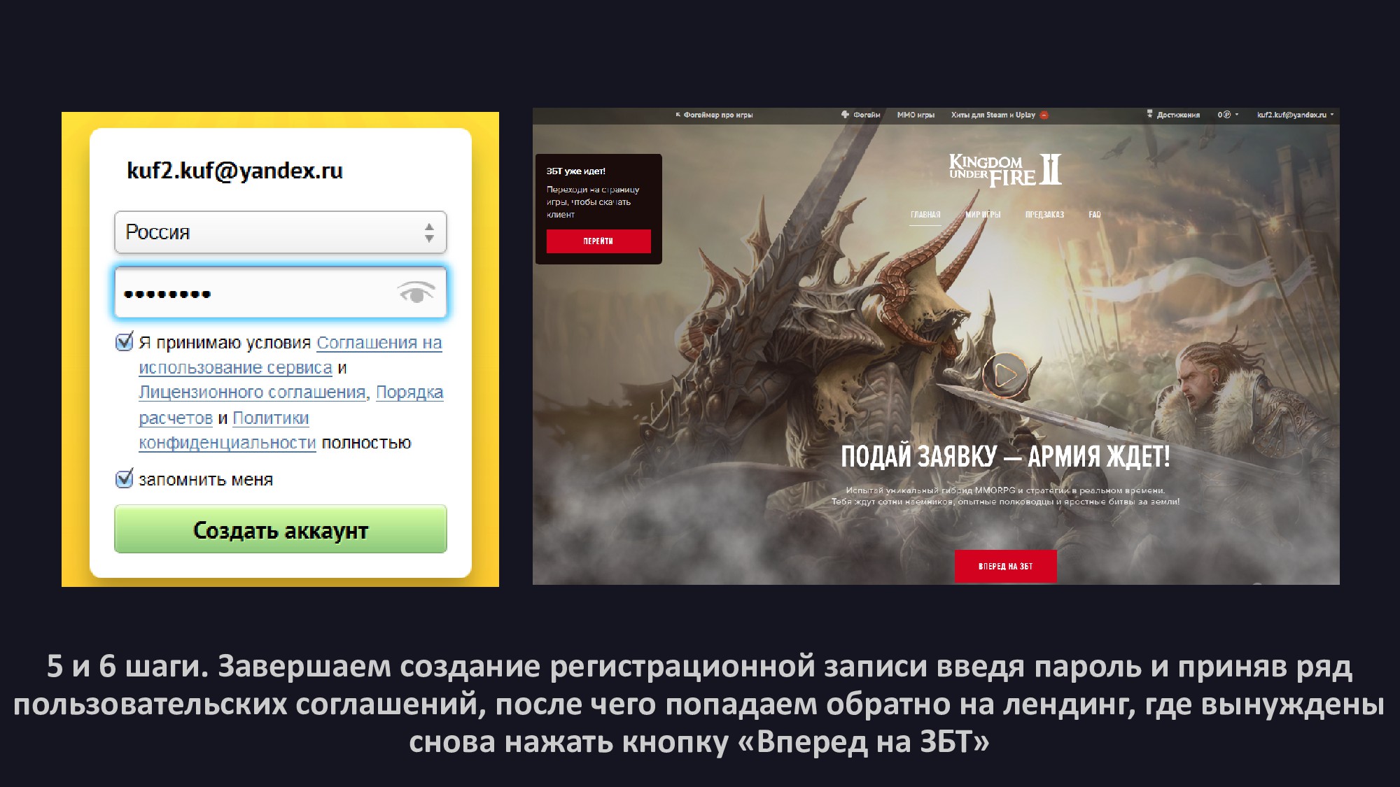 и приняв ряд пользовательских соглашений, после чего попадаем обратно на лендинг, где вынуждены снова нажать кнопку «Вперед на ЗБТ»