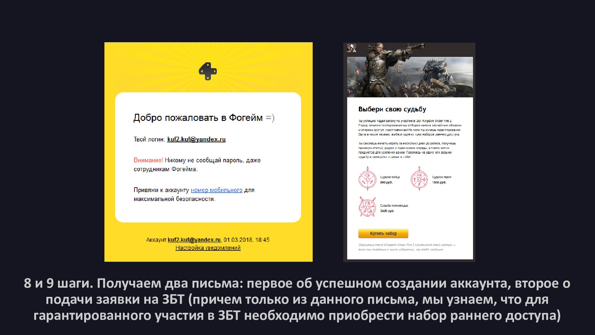 создании аккаунта, второе о подачи заявки на ЗБТ (причем только из данного письма, мы узнаем, что для гарантированного участия в ЗБТ необходимо приобрести набор раннего доступа)