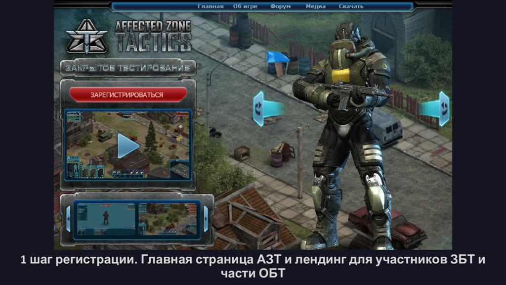 1 шаг регистрации. Главная страница АЗТ и лендинг для участников
