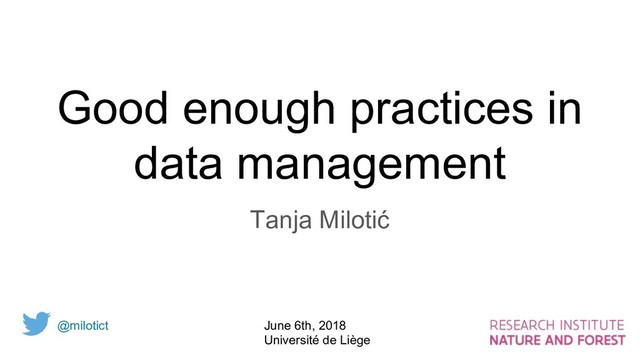 • While still active • >1 location: hard drives, servers, laptops,... • Easy to modify files, but also to delete or lose them Archiving & publishing • Long-term monitoring projects • After finishing short-term projects • Deposited in a digital repository • Safeguarded & preserved both!