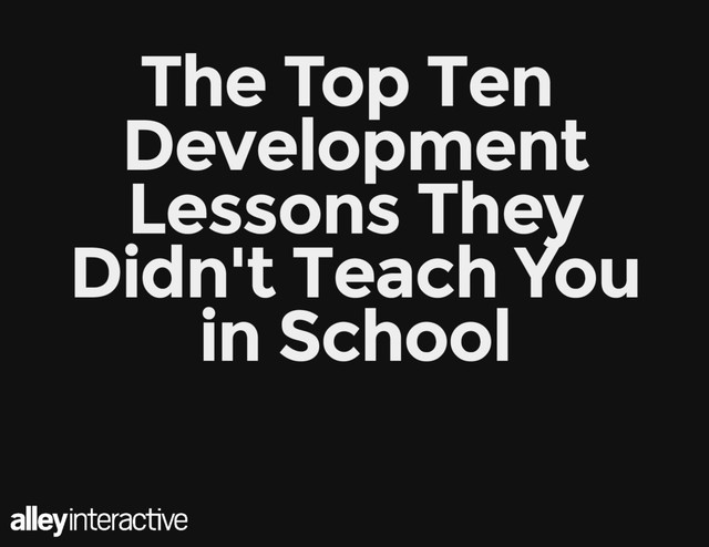 In this talk, we'll go through the top ten lessons that were missing from your computer science syllabus about how to be a functional developer, whether you work on a team or on your own.