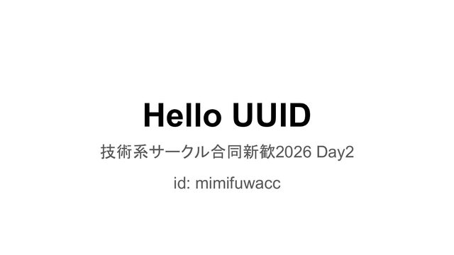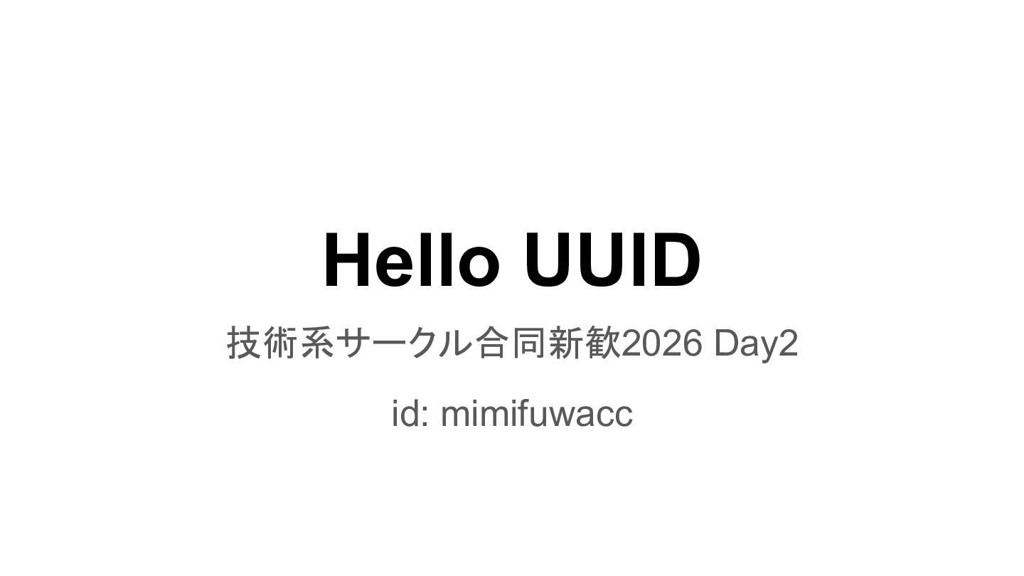 Hello UUID 技術系サークル合同新歓2026 Day2 id: mimifuwacc