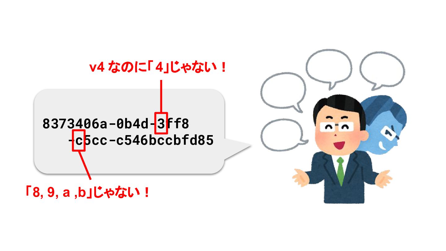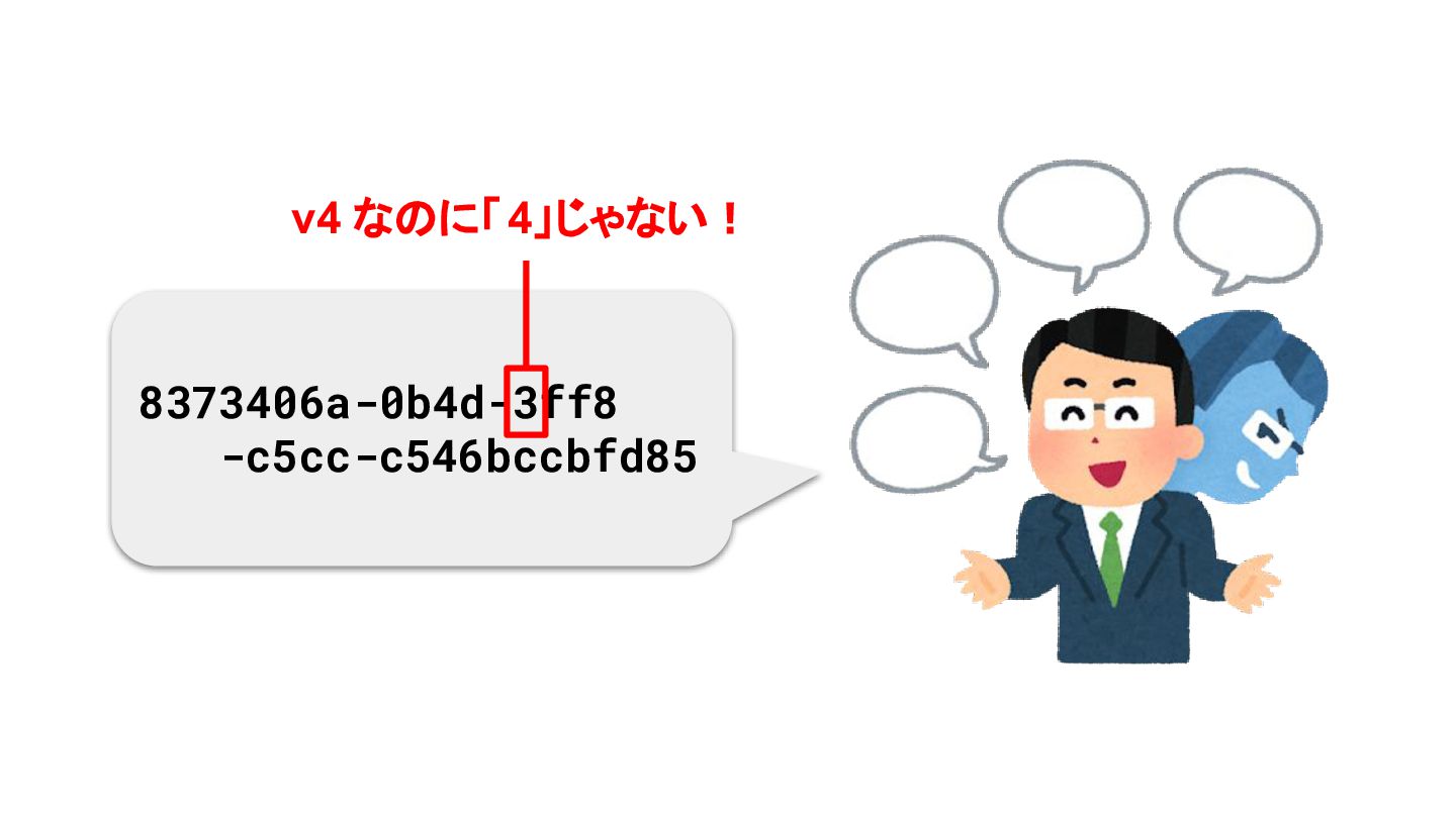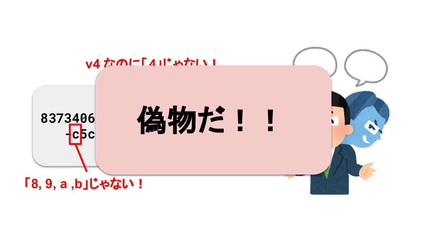 8373406a-0b4d-3ff8 -c5cc-c546bccbfd85 v4 なのに「4」じゃない! 「8, 9, a ,b」じゃない! 偽物だ!!