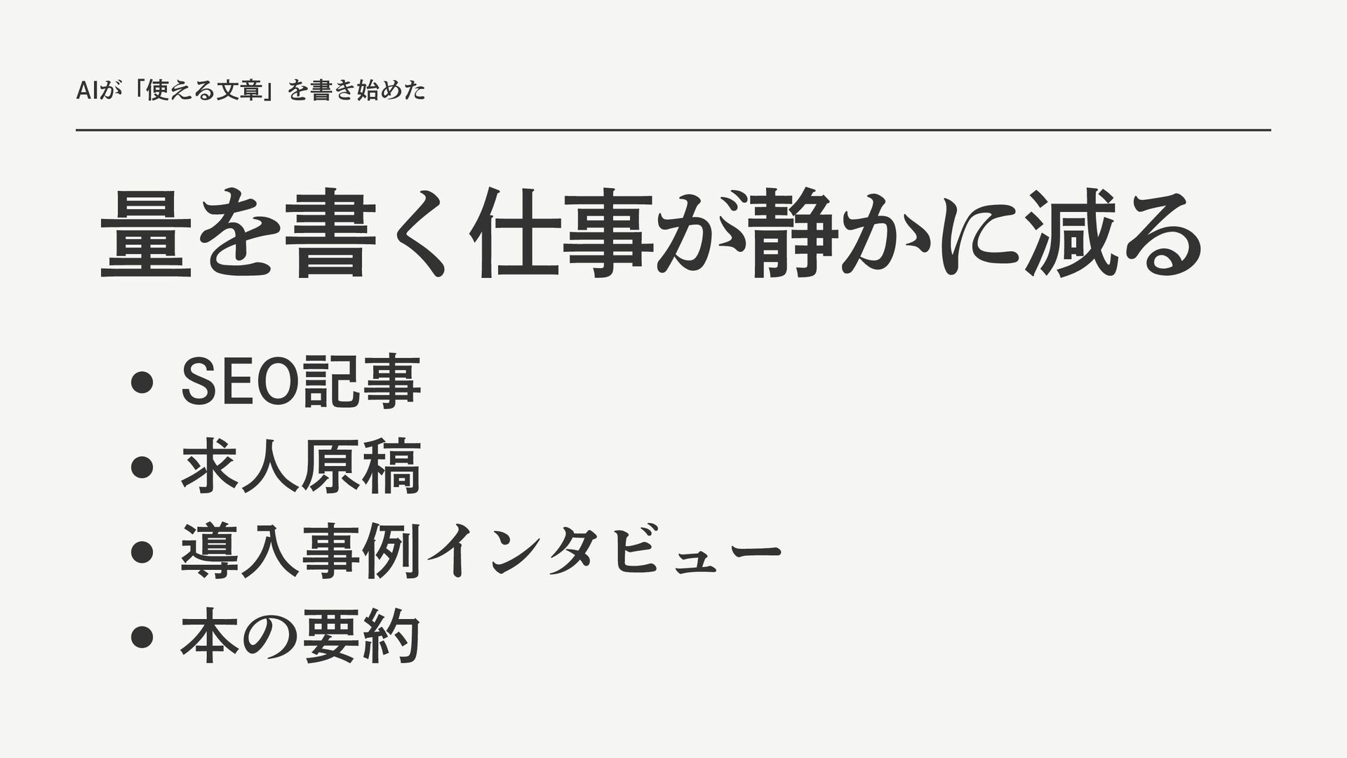 AIが「使える文章」を書き始めた 量を書く仕事が静かに減る SEO記事 求人原稿 導入事例インタビュー 本の要約